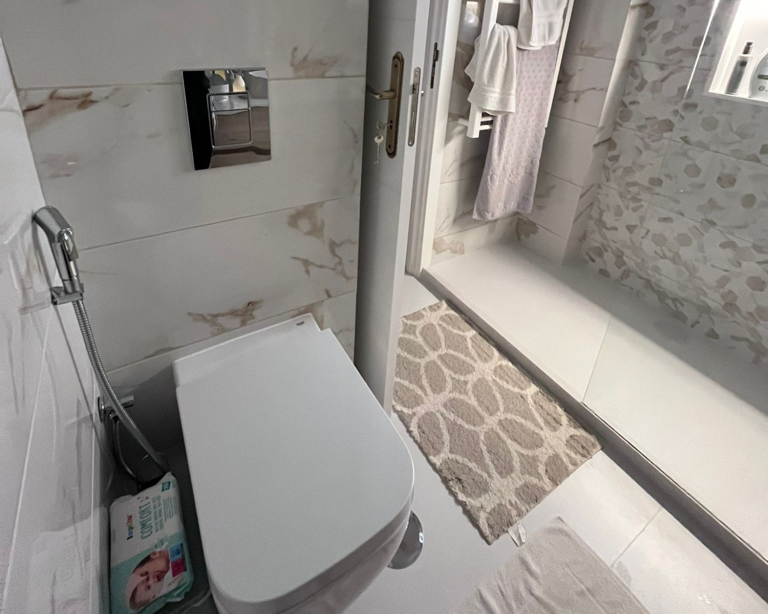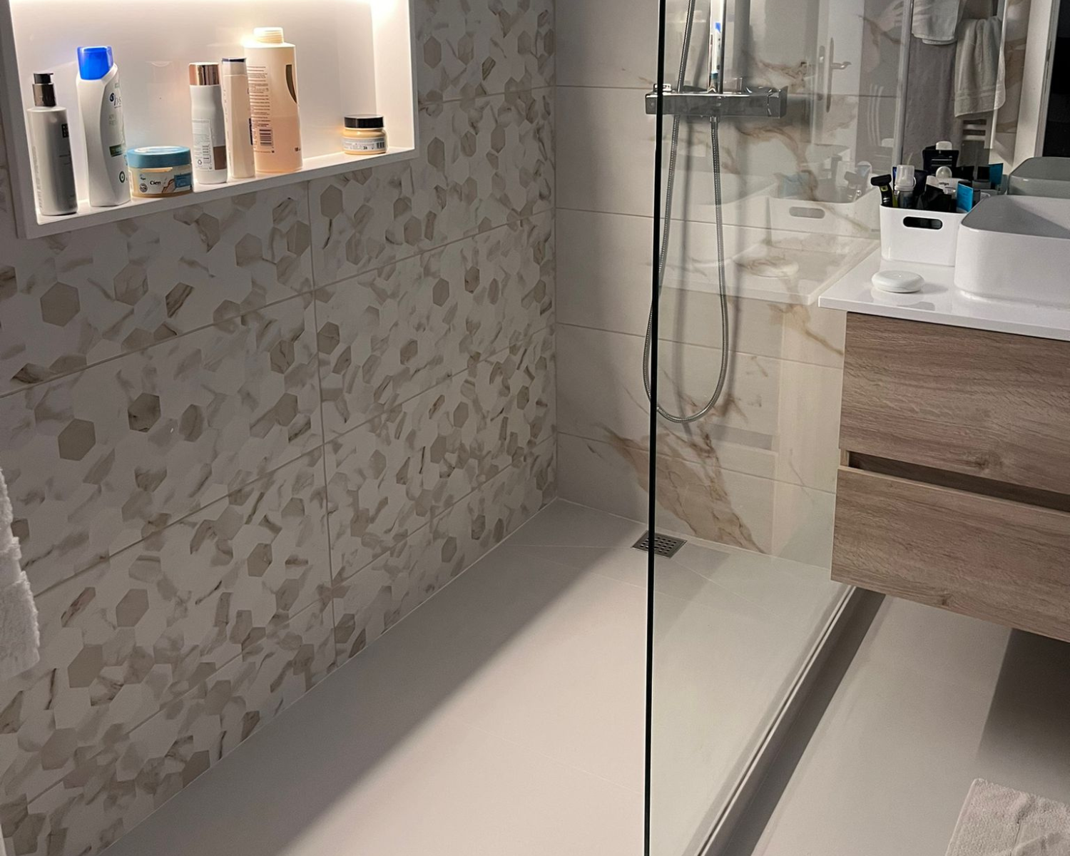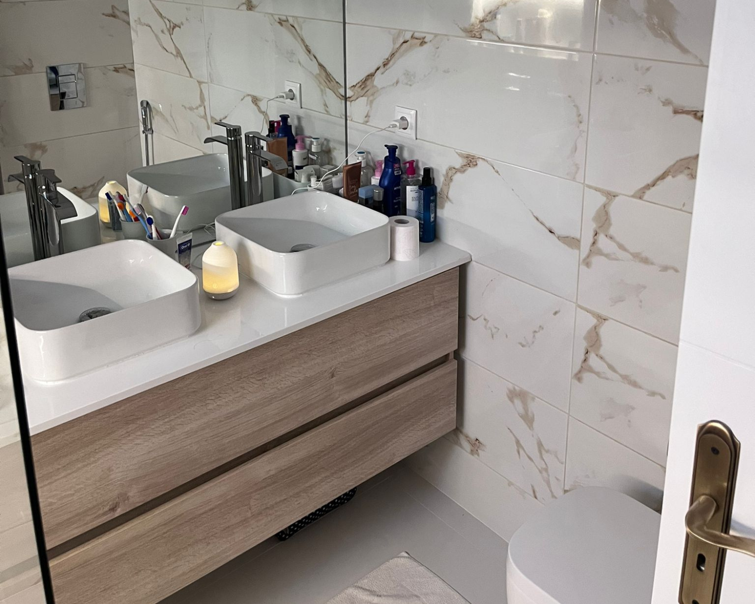 Remodelação de uma casa de banho, que foi transformada em duas. Apartamento situado no Alvide em Cascais.